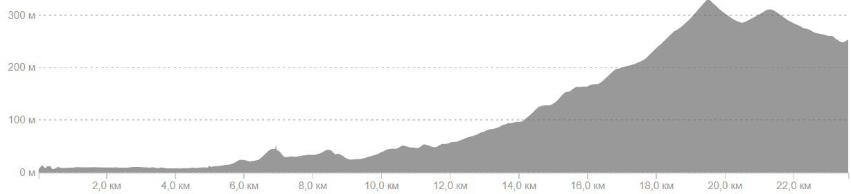 Elevation Profile: +300 m / –50 m